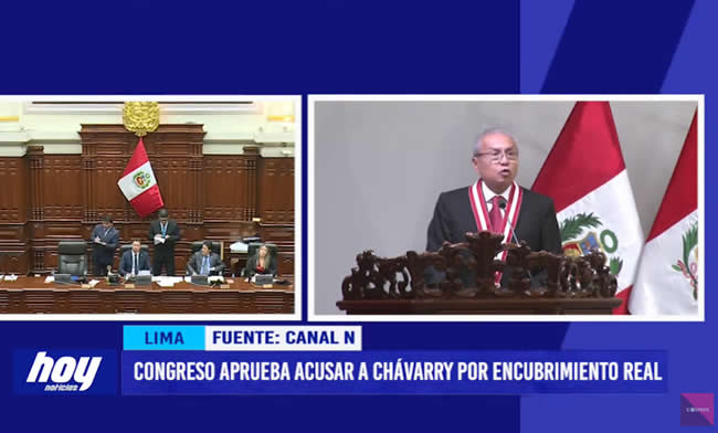 El Pleno del Congreso de la República aprobó la acusación constitucional contra el fiscal supremo Pedro Chávarry por el delito de encubrimiento real, con 75 votos a favor, 0 en contra y cuatro abstenciones se aprobó acusarlo constitucionalmente por la presunta comisión del delito de encubrimiento real, por la remoción de los fiscales Rafael Vela Barba y Domingo Pérez, del equipo especial del caso Lava Jato. De esta manera, el letrado dejaría sus funciones.