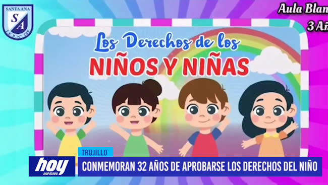 El sábado 20 de noviembre se conmemoró 32 años de la aprobación de la convención de los derechos del niño, en la ciudad de Trujillo una institución educativa, aprovechando la virtualidad aplicó una nueva estrategia, para que los niños a través de un noticiero infantil, nos expliquen sobre sus derechos, con su lenguaje y su inocencia.
