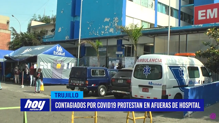 Usuarios de Essalud con diagnostico positivo de Covid-19 exigieron calidad de atención al asegurado en las afueras del Hospital Albrecht luego de recibir sus indicaciones por WhatsApp y no de manera física para poder entregar a las empresas privadas donde laboran. También reclamaban sobre la demora de entrega de medicamentos que son muy importantes para el tratamiento.