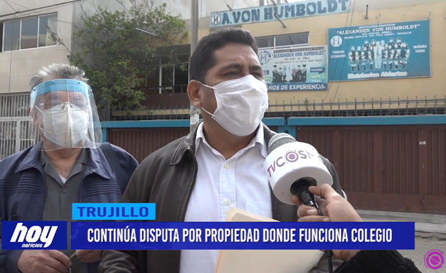 La propiedad donde funciona institución educativa Alexander Von Humbolt sigue en disputa, hermanos Sánchez están viviendo en este lugar y el director Ibero Rodríguez señala que son tres los socios de este local, el abogado del promotor, Jean Paul Silva denunció de manera pública y señaló que es una usurpación clandestina.