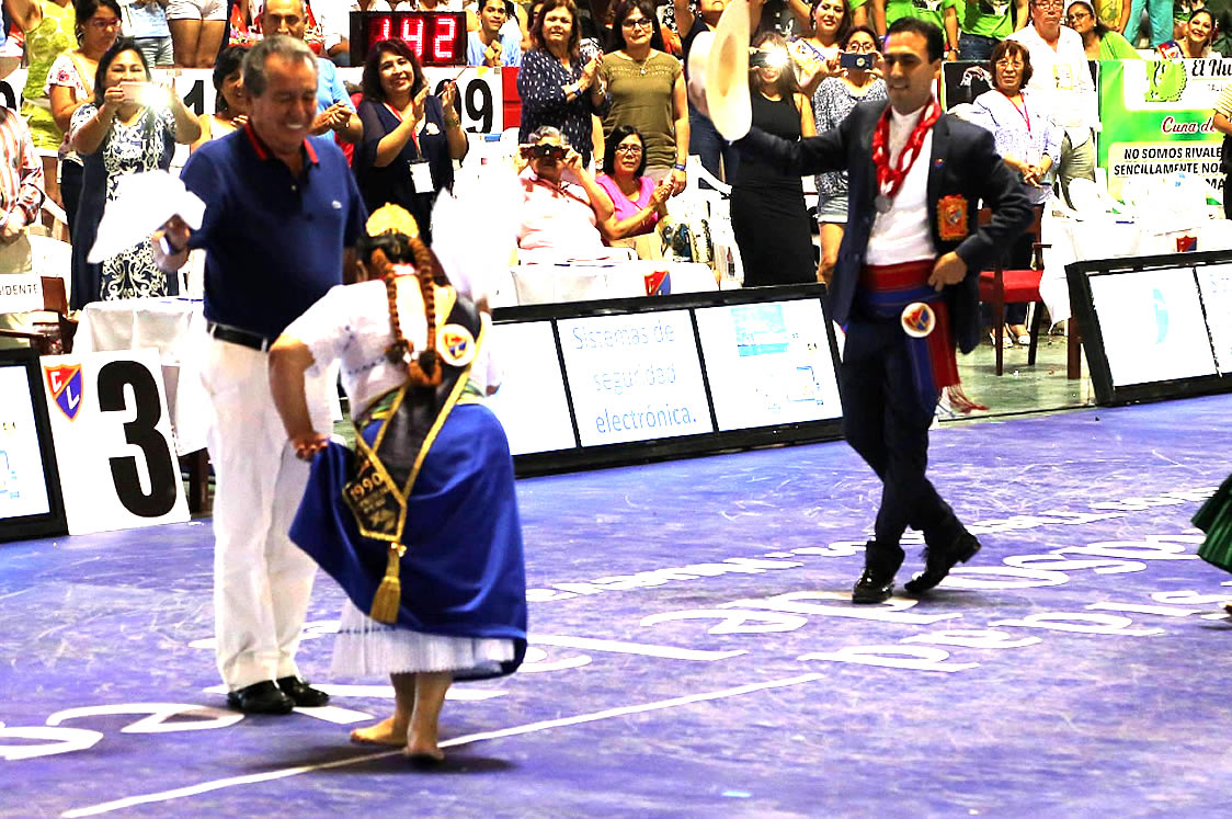 Los campeones laureados Gino Morales, Adela Ahón, Hugo Romero y Rocío Collantes realizaron un hermosa coreografía a ritmo la marinera «Chavimochic». Fernando Burmester, presidente del Club Libertad, se llevó una gran sorpesa al ser invitado a bailar a la pista de baile por los laureados.