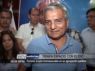 El coronel en retiro Elidio Espinoza, líder de un movimiento político regional, afirmó que no tiene ningún problema en que homosexuales integren su agrupación. Asimismo, no quiso precisar si postulará al municipio provincial o al gobierno regional.
