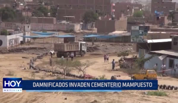 Damnificados de El Niño Costero y traficantes de tierras han invadido parte del cementerio Mampuesto. Así lo denunció el presidente de la Beneficencia Pública de Trujillo. El terreno en cuestión le pertenece a este organismo.