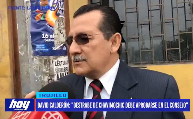 El presidente del Consejo Regional, David Calderón, cuestionó a sus homólogos que cuestionan el destrabe de Chavimochic.