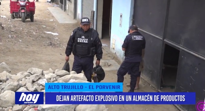 Las extorsiones están a la orden el día, en el Centro Poblado Alto Trujillo en el distrito El Porvenir, un sujeto dejó un artefacto explosivo en la puerta de vivienda que es utilizada como almacén de productos. Delincuentes exigen a la propietaria del negocio la suma de quince mil soles.