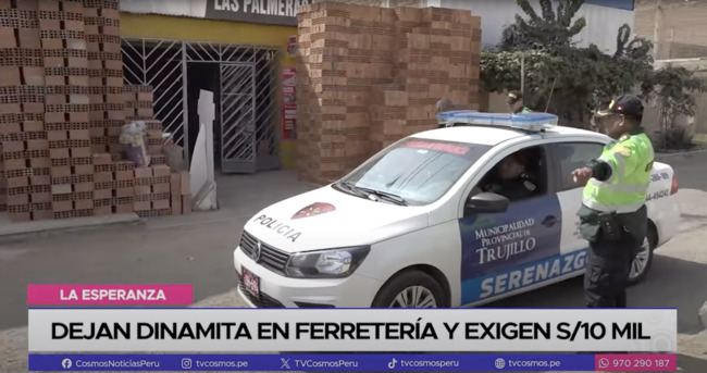 En el asentamiento humano Las Palmeras, ubicado en el distrito trujillano de La Esperanza, se registró un preocupante episodio de extorsión. Después de seis años, la dueña de una ferretería en la zona ha vuelto a ser blanco de extorsionadores. En esta ocasión, los delincuentes dejaron una dinamita con mecha dentro de un folder manila, exigiéndole el pago de 10 mil soles.
