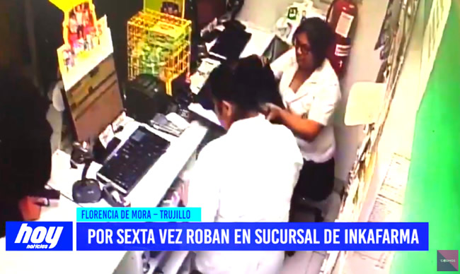 Mil seiscientos soles y tres cajas de leche de una reconocida marca se llevó un delincuente armado tras asaltar una sucursal de Inkafarma en Florencia de Mora. En dos años de funcionamiento les han robado seis veces.