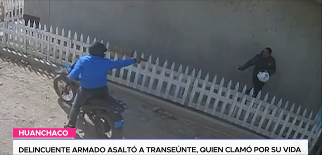 Y es que moradores señalaron que los robos y asaltos ocurren a cualquier hora, tal como lo demuestran estas imágenes. Un sujeto armado y a bordo de una motocicleta quien llevaba puesto un casco, visualizó a su víctima, este trató de escapar por la avenida Húsares de Junín, pero fue en vano, el facineroso logra alcanzarlo, baja de la unidad y le arrebata sus pertenencias como su celular. La víctima incluso, clama auxilio y pide no le haga daño.