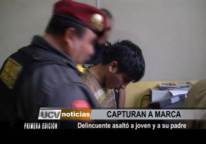 Un peligroso “marca” fue capturado por la policía minutos después de haber asaltado a una joven y su padre en las inmediaciones del óvalo Papal. Su cómplice logró darse a la fuga y se llevó más de seis mil nuevos soles de sus víctimas.