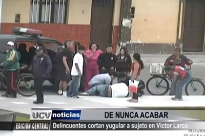 Un grupo de delincuentes le cortó el cuello con un pico de botella a un joven cuando caminaba por la Plaza de Armas de Víctor Larco. La víctima resultó gravemente herida tras resistirse a un asalto.
