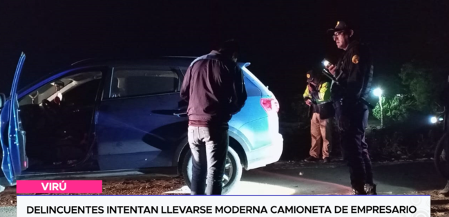 El hecho se registró en la zona conocida como Pacora, en la carretera que va del lugar llamado Cerrito hacia el badén La Gloria, a un costado del canal San Idelfonso, en la provincia de Virú. Uno de los ocupantes del vehículo logró alertar a Seguridad Ciudadana, quienes llegaron rápidamente al lugar, frustrando el robo. Los delincuentes emprendieron la huida al notar la presencia de los agentes.