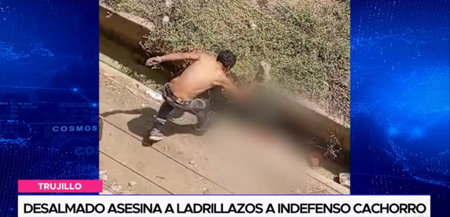 El hecho ocurrió en Natasha Alta a espaldas de agro industrial laredo. Duras imágenes registradas por un testigo, muestran a este indigente actuar con crueldad contra este animalito, primero lo ataca con un ladrillo, luego con un bloque de concreto, cuando el cachorro solo descansaba en la zona, sin atacar a nadie.