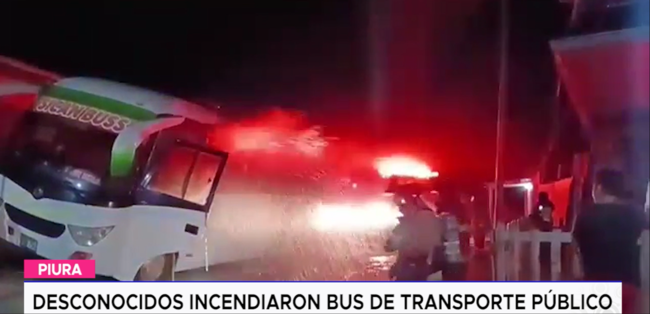 Un vehículo de transporte público de la empresa Sican bus fue incendiado la madrugada del miércoles en el sector Upis Villa Caritas en el distrito 26 de octubre en la región Piura. Un hecho sorpresivo y sospechoso para el propietario, pues su unidad permanecía todas las noches fuera de su vivienda.