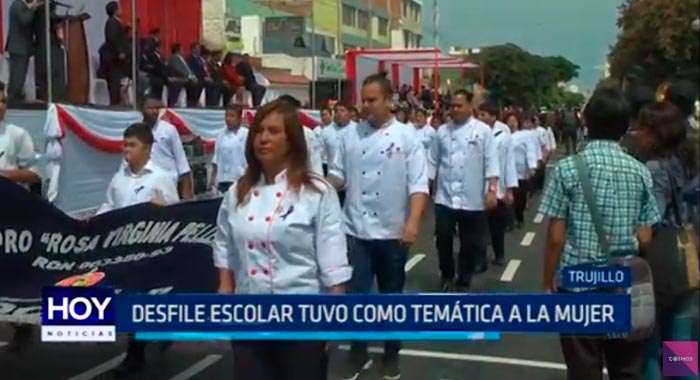 El respeto por los derechos de la mujer y el alto a la violencia de género fue la temática en el desfile escolar organizado por la Gerencia Regional de Educación.
