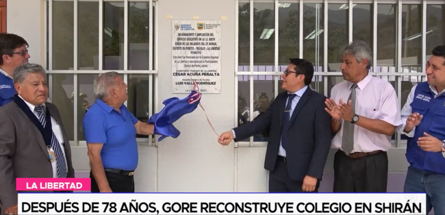 El gobernador regional de La Libertad, César Acuña, inauguró el renovado colegio N.º 80059 Señor de los Milagros, ubicado en el Centro Poblado de Shirán, en el distrito de Poroto. Con una inversión de S/. 5.7 millones de soles, la obra beneficiará a más de 200 estudiantes de primaria y secundaria, quienes disfrutarán de nuevas instalaciones, un laboratorio de cómputo y mobiliario moderno.
