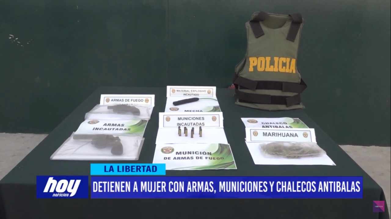 En el interior de su domicilio, en la calle Indoamérica, Mz 03, Lote 19, en el sector Gran Chimú, del distrito trujillano de El Porvenir, se encontró dos revolver, cinco municiones calibre 38 sin percutir, tres casquillos de balas, un chaleco policial, un cartucho de dinamita y Marihuana.