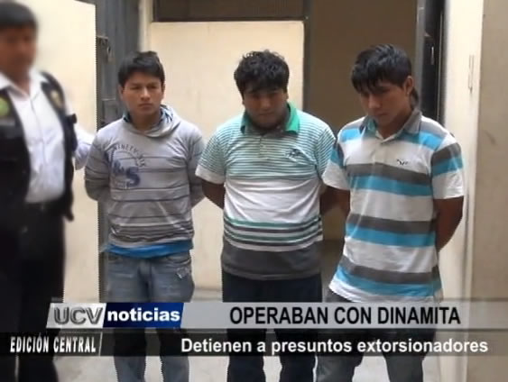 La Policía Nacional intervino y capturó a tres sujetos sindicados como presuntos extorsionadores de un carpintero y su vecina en el distrito de El Porvenir. Ellos solicitaban entre cinco y diez mil soles para no atentar contra sus víctimas. Además, dinamitaron la casa del carpintero.