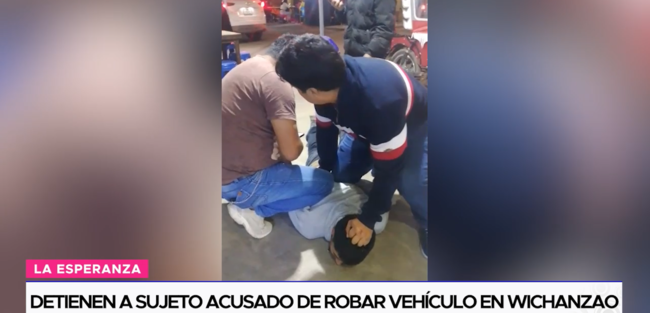 Es el momento en que un efectivo policial detuvo a un sujeto de 19 años, acusado de robar un vehículo en el sector Wichanzao en el distrito La Esperanza la noche del pasado 19 de agosto.