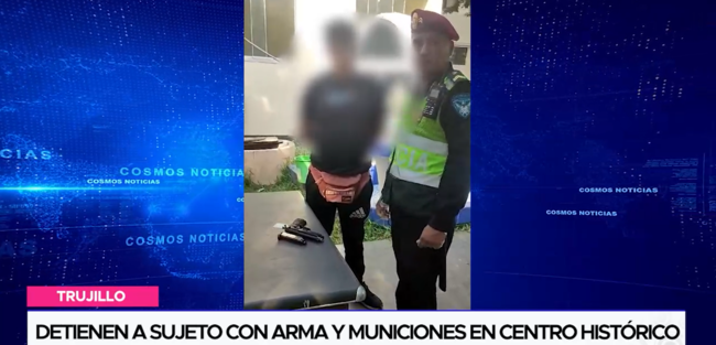 La PNP, detuvo a un sujeto en posesión ilegal de un arma de fuego y municiones en la plazuela Iquitos, ubicada en el jr. Gamarra, en pleno centro histórico de Trujillo.