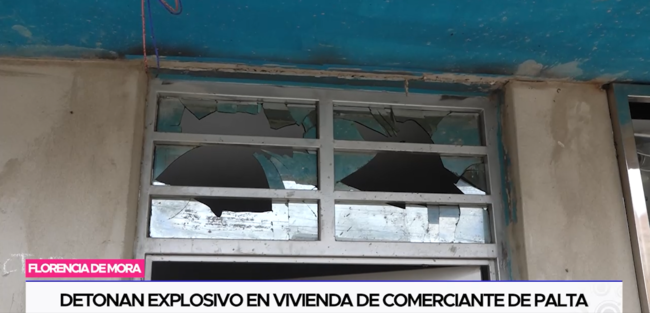 Nuevamente delincuentes en escena. En esta ocasión malhechores hicieron detonar un artefacto explosivo en la fachada de este inmueble ubicado en el distrito de Florencia de Mora.