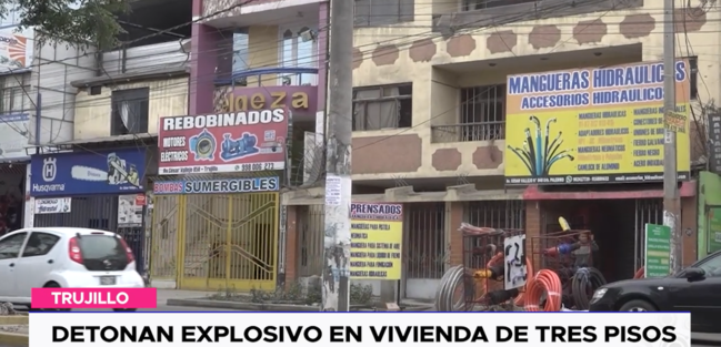 Malhechores escogieron la medianoche del último sábado para hacer detonar un material explosivo en la fachada de este inmueble de tres pisos ubicado en la cuadra 8 de la av. César Vallejo en donde además funciona un negocio de ventas de mangueras hidráulicas.