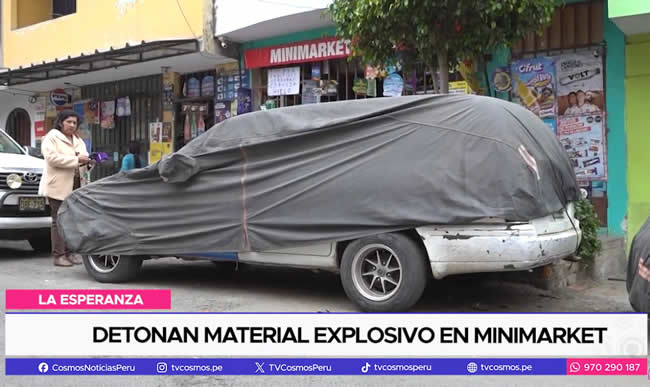 Un fuerte ruido en la madrugada del jueves despertó a los moradores del jirón Ayacucho, en la parte baja del distrito de La Esperanza. La detonación de un material explosivo en los exteriores de un minimarket causó daños en un vehículo estacionado en la vía pública.