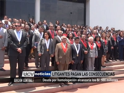La lucha por la homologación salarial de los magistrados del país, congelada hace 20 años, no termina. En La Libertad, jueces y fiscales realizaron una nueva sesión plena y como símbolo de su rechazo izaron el pabellón nacional en el frontis de la corte de Natasha Alta. Lo que llama la atención es que se estima que esta deuda supera los 500 millones de soles.