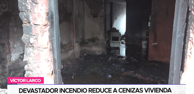 Un voraz incendio registrado en la calle Pedro Herrera, en el distrito de Víctor Larco, dejó completamente calcinado el interior de una vivienda, reduciendo a cenizas todos sus bienes materiales y dejando a sus ocupantes prácticamente en la calle.