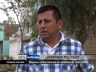 El vehículo del candidato a la alcaldía provincial de Gran Chimú, Carlos Díaz Lezama, fue atacado a balazos por desconocidos en la puerta de su casa. Víctima asegura que se trataría de un ataque político.