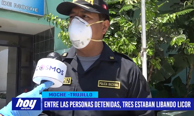 En el distrito de Moche, el capitán Denis Meléndez, confirma que detuvieron a 10 personas el domingo en la inmovilización obligatoria y tres de estas estaban libando licor.