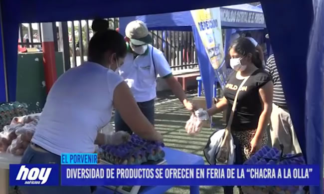Feria de la “Chacra a la olla» congregó a pobladores de diferentes sectores del distrito de El Porvenir, mercado Minagri y la municipalidad no descuidaron medidas de seguridad dentro y fuera del polideportivo Claro de Río Seco.