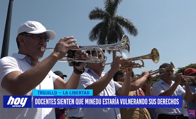 De esta forma docentes de banda de distintos centros educativos de Trujillo expresan su malestar, pues sienten que se están vulnerando sus derechos, debido a la disposición del Ministerio de Educación de racionalizar las plazas. La idea sería reducir la brecha del déficit docente.