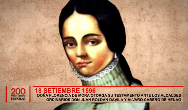 Un día como hoy en 1596, Doña Florencia de Mora otorga su famoso testamento ante los alcaldes ordinarios de Trujillo Don Juan Roldán Dávila y Álvaro Cabero de Henao.