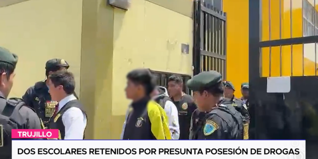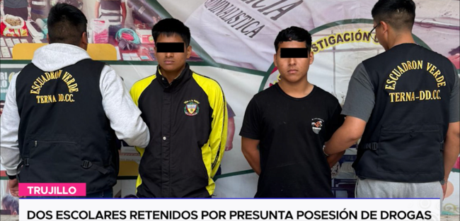 Dos estudiantes de la institución educativa emblemática de Trujillo “San Juan” fueron retenidos por la policía nacional por estar implicados en la presunta comisión del delito contra la salud pública – tráfico ilícito de drogas. El caso viene siendo investigado por el área antidroga de la policía.