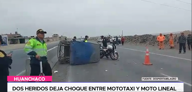 Un accidente entre una moto taxi y una moto lineal se registró en el kilómetro 586 de la carretera Panamericana Norte.