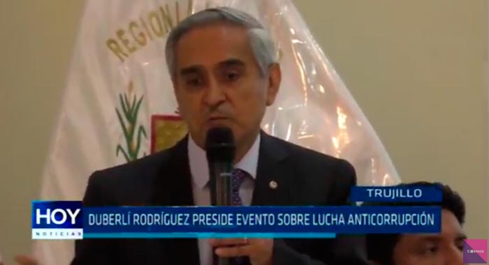 El presidente del Poder Judicial, Duberlí Rodríguez, participó en Trujillo de la conferencia “retos y desafíos de la lucha contra la corrupción”. El magistrado sostuvo que los retrasos en la sanción a los casos vinculados a Odebrecht no son responsabilidad de su institución.