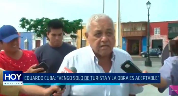 Eduardo Cuba, gerente general de obras de la empresa ARESA contratistas generales sac, defendió la obra de mejoramiento en la Plaza Mayor de Trujillo manifestando que es aceptable, pese a que fue sorprendido por la prensa realizando una inspección.