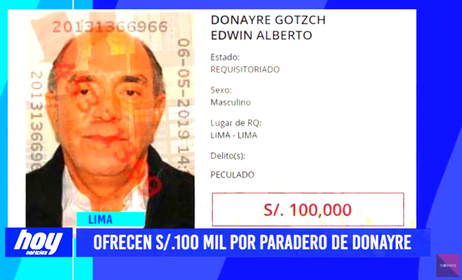 Edwin Donayre: Ofrecen 100 mil soles de recompensa a quien brinde información que permita su captura