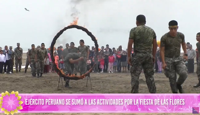 La magia de la primavera contagia hasta el espíritu más recio. Los soldados de la 32° Brigada de Infantería del ejército peruano se sumaron a las actividades por el 69° Festival Internacional de la primavera, y llegaron hasta Huanchaco para demostrar sus habilidades y destrezas en el uso de armas.