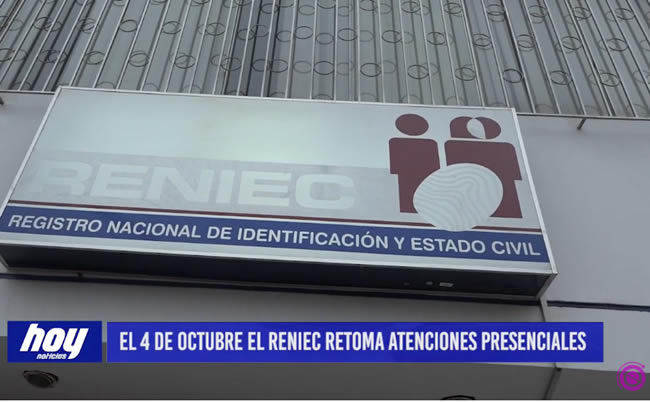 A partir de este 4 de octubre las sedes del Registro Nacional de Identificación y Estado Civil (RENIEC) en la ciudad de Trujillo, retomarán las atenciones normales en su horario habitual a partir de las 8 de la mañana, así lo señaló el coordinador regional José Terrones, quien dijo además que seguirán con los protocolos establecidos y el aforo correspondiente.