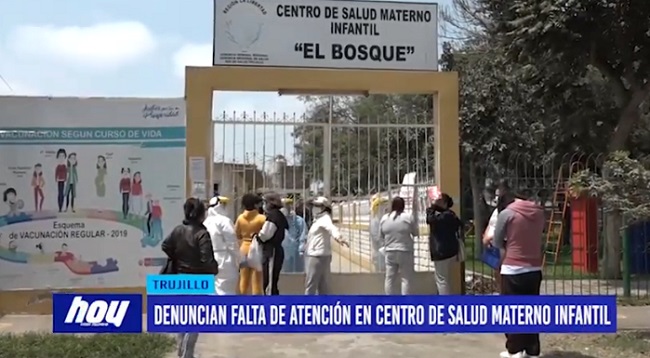 Moradores de la Urb. El Bosque, hicieron una denuncia pública. En vano esperaron por largas horas para ser atendidos en el centro de salud materno infantil «El Bosque”. Los pacientes señalan que llegaron a tempranas horas y personal del establecimiento de salud les informaron que no iba a ver atención.