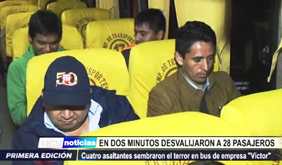 Delincuentes asaltaron un bus con 28 pasajeros a bordo, en el sector La Soledad, centro poblado El Milagro. Entre dinero y artículos, los maleantes se llevaron cinco mil soles.