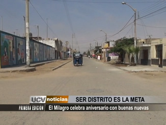 Por el 39° Aniversario de Fundación del Centro Poblado El Milagro, el alcalde del mencionado lugar, Saúl Pérez, informó que están tomando todas las acciones para convertir su localidad en distrito.