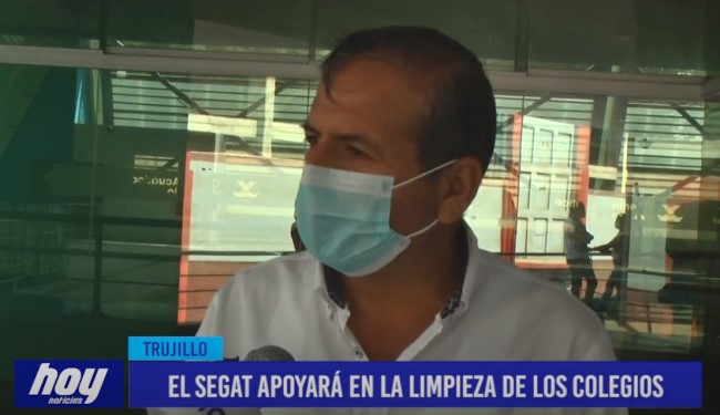 El gerente del SEGAT Joel Díaz, se comprometió públicamente a apoyar en la limpieza de las Instituciones Educativas de Trujillo que presentan mayor cantidad de residuos sólidos, así también exhortó a las diferentes instituciones a unirse para apoyar en la reanudación de clases.
