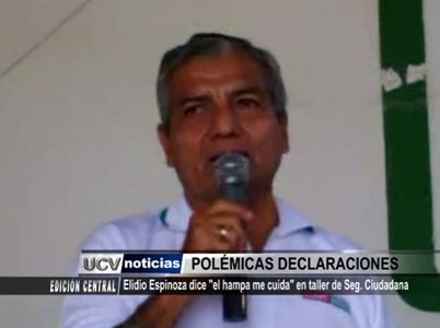 El líder del Movimiento Regional para el Desarrollo con Honradez y Seguridad, Elidio Espinoza causó polémica al referir que conversa con el hampa y los delincuentes lo cuidan. Estas palabras las dio durante un taller de seguridad ciudadana en el valle Chicama.