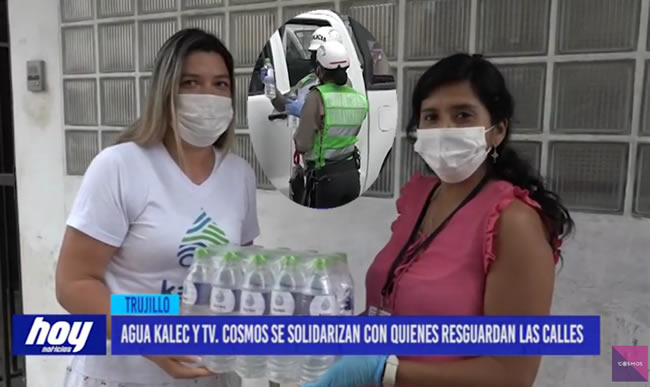 La empresa privada Agua Kalec y TV Cosmos se solidarizan con quienes resguardan las calles de la ciudad e hicieron entrega de agua a cada efectivo policial y soldado del Ejército Peruano ubicados en cada esquina en el 16 día de cuarentena, así mismo se pudo evidenciar la restricción y control de unidades de transporte público y privado.