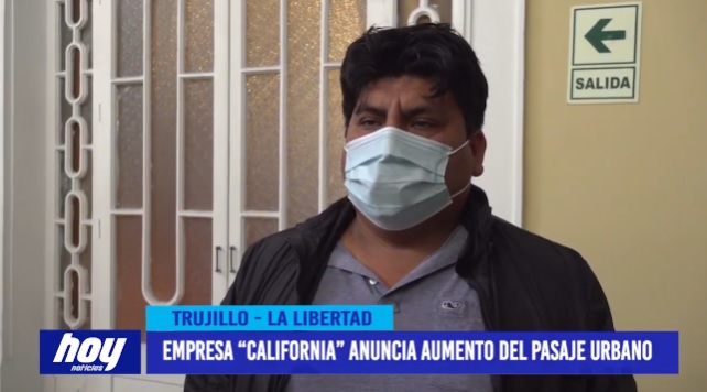La Empresa “California” incrementaría el costo del pasaje urbano a dos soles. Según informó su presidente, Iván Cruz, ello correspondería al alza de los precios de repuestos para el mantenimiento de los vehículos. Pidió la comprensión de los usuarios.