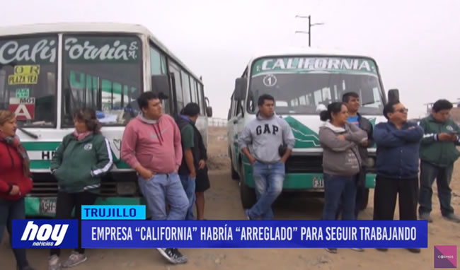 A pesar de solicitar una entrevista con los representantes de la empresa de transporte urbano “California”, de manera extraoficial se nos informó que éstos ya habrían negociado con el hampa, para que sus unidades puedan circular por las calles con normalidad; tras la última paralización del lunes.