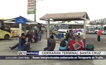 El gerente regional de Transportes, Ever Cadenillas, anunció que, en dos meses, las empresas de transportes del terminal Santa Cruz, se mudarán al terrapuerto de Trujillo con la finalidad de brindar un mejor servicio a los usuarios. Esto luego del informe que emitiera Defensa Civil declarando a las instalaciones del terminal del barrio Chicago como una edificación de alto riesgo.