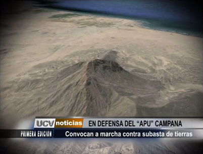 Un colectivo ciudadano ha convocado para hoy a una marcha en defensa del cerro Campana, luego de conocer que más de cuatro mil hectáreas de tierras cercanas a lo que sería la zona de amortiguamiento del “Apu Protector”, serán subastadas por Proinversion. La manifestación ciudadana iniciará a las 11 de la mañana en la Plaza de Armas de Trujillo.